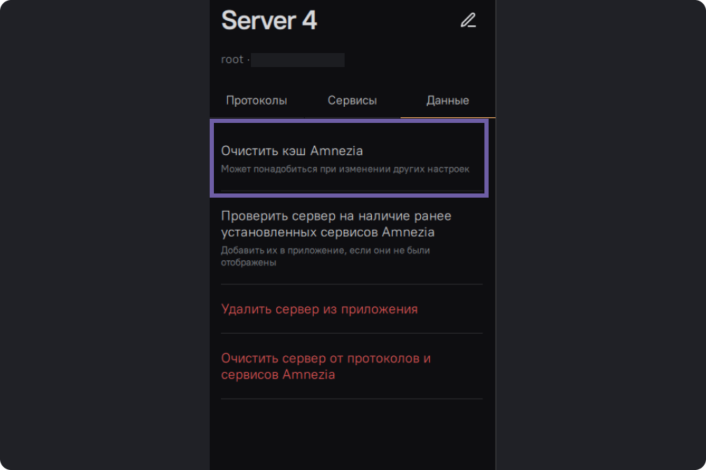 Очистка кэша может пригодиться для устранения ошибок в работе Amnezia, а так же для корректной настройки приложения.