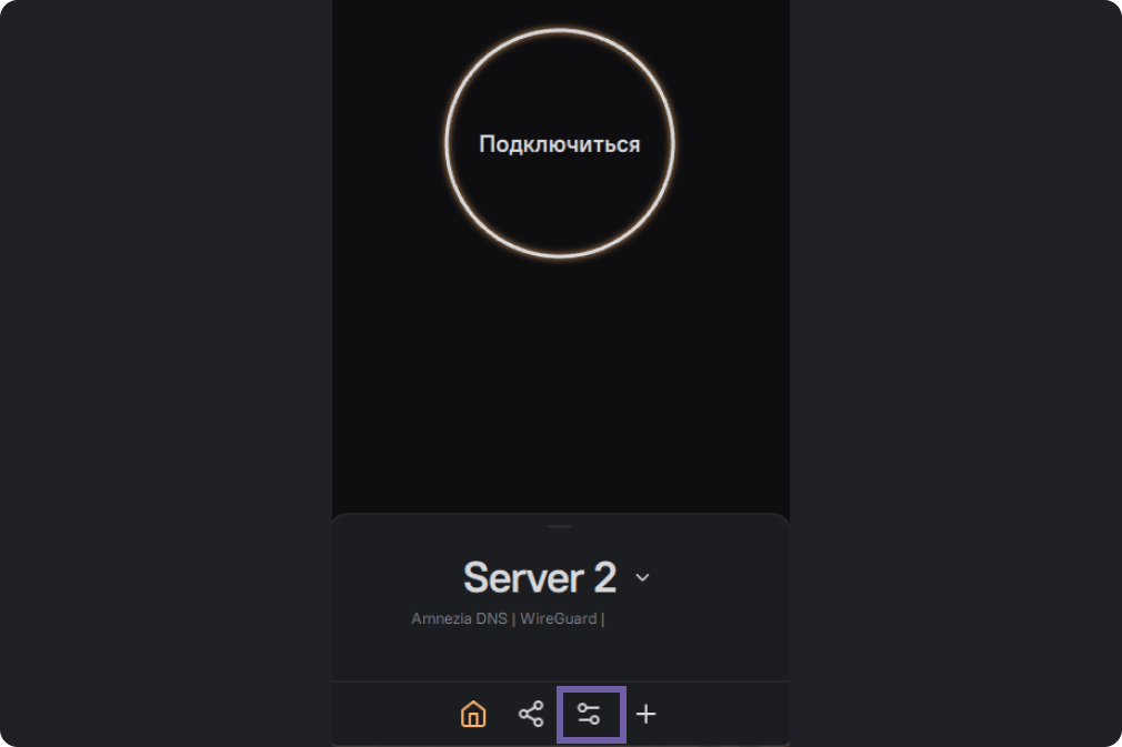 Здесь вы сможете выбрать опцию “Использовать Amnezia DNS”, или использовать другие DNS серверы.
