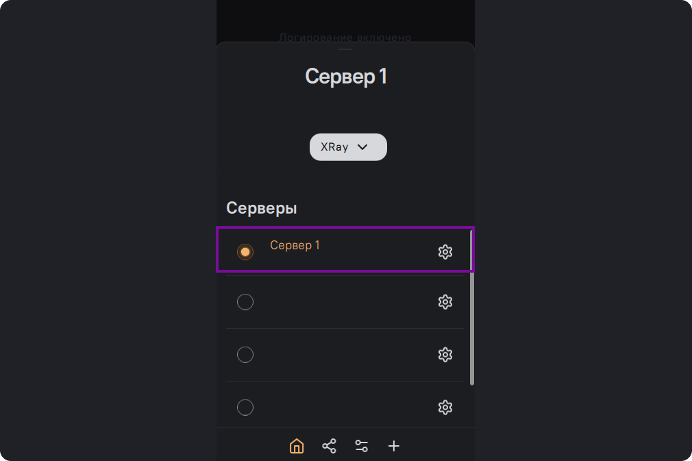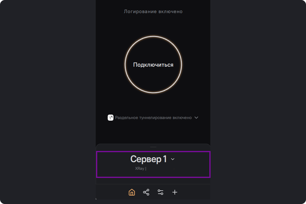 Нажмите на название сервера на главном экране