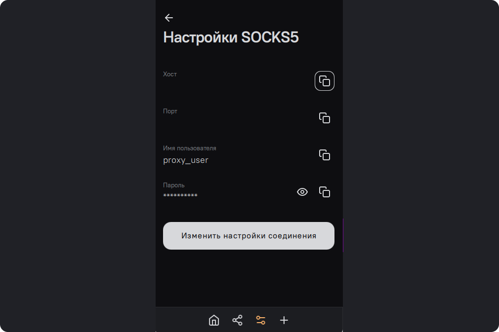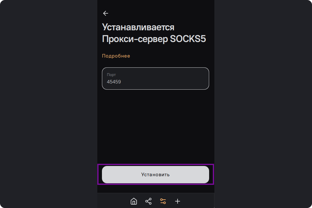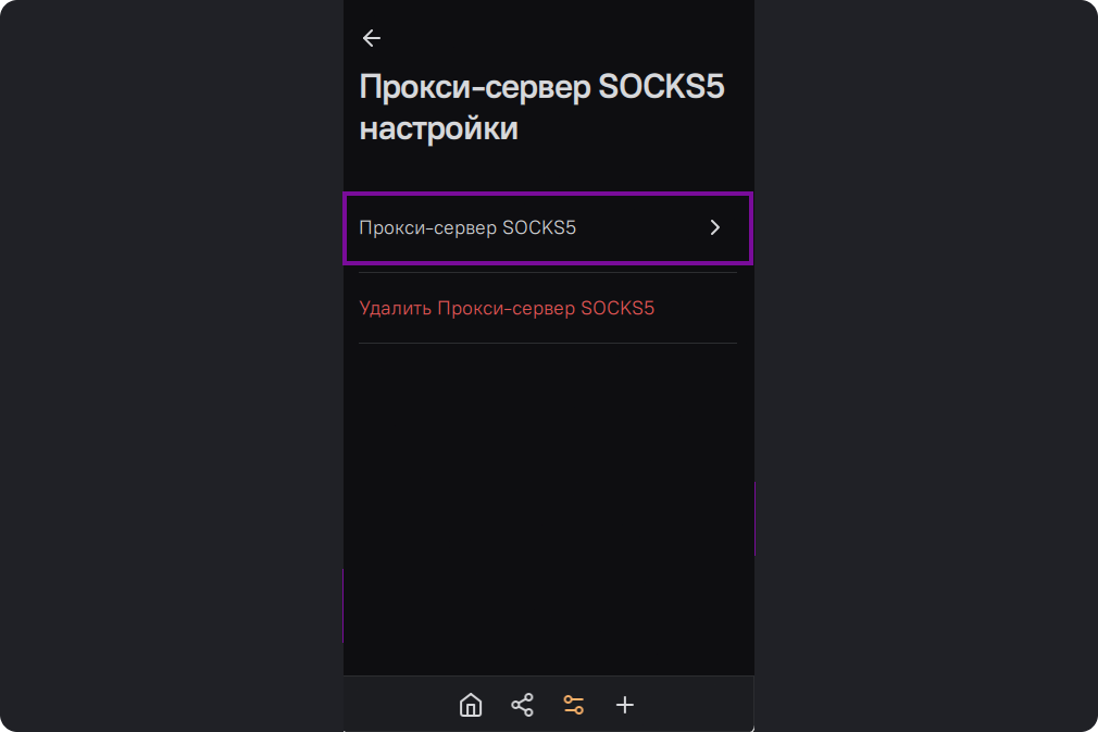 Далее "Прокси-сервер SOCKS5".